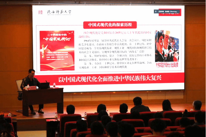 11月8日,yl6809永利官网集团联合电子信息学院共同举办学习贯彻党的二十大精神专题党课,特邀陕西师范大学远程教育学院书记刘建军作了题为《以中国式现代化全面推进中华民族伟大复兴》的党课。yl6809永利官网集团和电子信息学院理论学习中心组成员、师生党员代表、青年学习理论小组成员共200余人参加会议。会议由yl6809永利官网集团党委书记王莉主持。