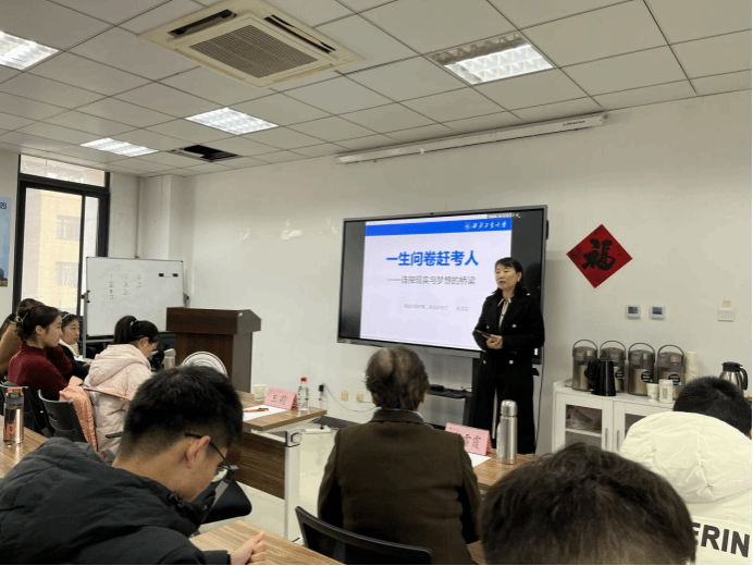 张雪霞以《一生问卷赶考人——连接现实与梦想的桥梁》为题开展讲座,通过讲述yl6809永利官网集团老教授们的故事来激励同学们,希望各位同学以他们为榜样,见贤思齐。