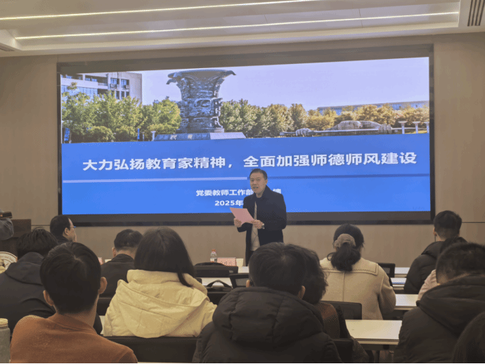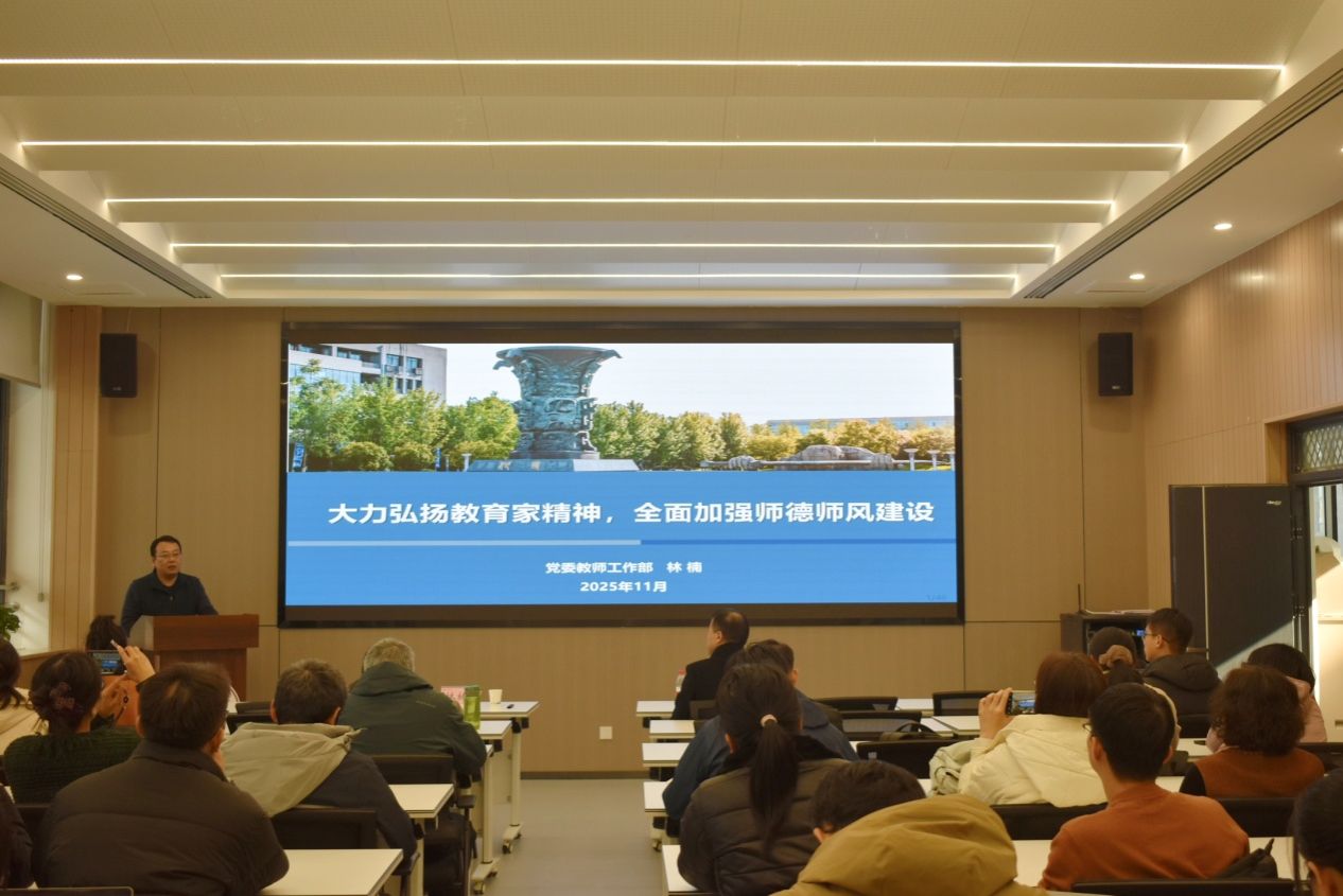 为深入学习贯彻习近平总书记关于教育的重要论述,落实立德树人根本任务,进一步团结凝聚学院广大教师以更加奋发有为的精神状态投身教育强国建设实践,大力弘扬教育家精神,为学校实现“天下工大、世界三航”远景目标注入强劲动力。12月4日,yl6809永利官网集团邀请校党委教师工作部副部长林楠面向全体教师党员作了题为《大力弘扬教育家精神,全面加强师德师风建设》的专题报告。副院长徐根玖主持会议。