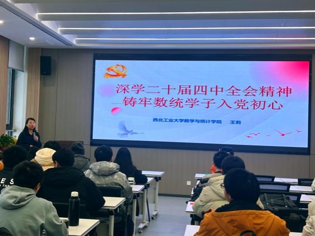 为深入学习贯彻党的二十届四中全会精神,引导学子坚定理想信念、铸牢入党初心,12月11日下午,yl6809永利官网集团党委特邀王莉书记为全体2025年秋季发展对象讲授“深学二十届四中全会精神,铸牢数统学子入党初心”专题党课。