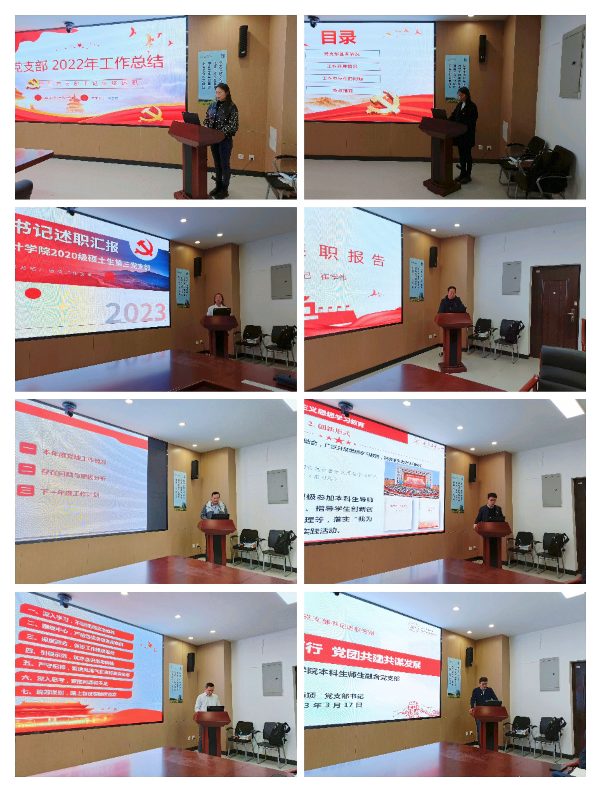 根据述职评议安排,学院各党支部书记依次进行述职,主要围绕深入学习贯彻习近平新时代中国特色社会主义思想和党的二十大精神、落实基层党建工作重点任务、强化党支部政治功能、做好思想政治教育和意识形态工作、落实全面从严治党要求、党支部工作方法及亮点等方面进行汇报,分析了当前工作存在的主要问题及原因,并结合工作实际提出了下一步工作思路和改进措施。