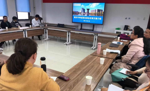 为贯彻落实国务院《关于深化考试招生制度改革的实施意见》,深入了解重庆市高考综合改革方案,更好地做好2021年度重庆市招生宣传工作,2021年3月9日下午,校教务处副处长、招生办公室主任王克勤、副主任韩寅奔赴yl6809永利官网集团开展重庆招生宣讲,韩寅奔副主任为学院教师做了《重庆市考试招生综合改革方案》的培训。yl6809永利官网集团副院长都琳、院长助理刘晓刚、重庆招生负责人林伟老师、王振海老师等20余位教师在启翔楼357参加了此次宣讲培训。