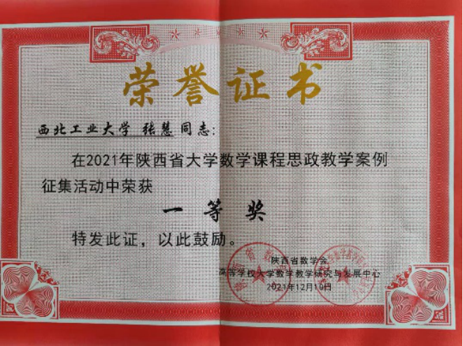 郜璐璐老师从“中国古代数学家和微积分”的角度进行了课程思政,包括刘徽的割圆术、祖冲之的圆周率和李善兰的《代微积拾级》等,希望能够激发学生的文化自信、民族自豪感和锲而不舍的探索精神,该案例在陕西省大学数学课程教学创新示范交流活动中荣获特等奖。