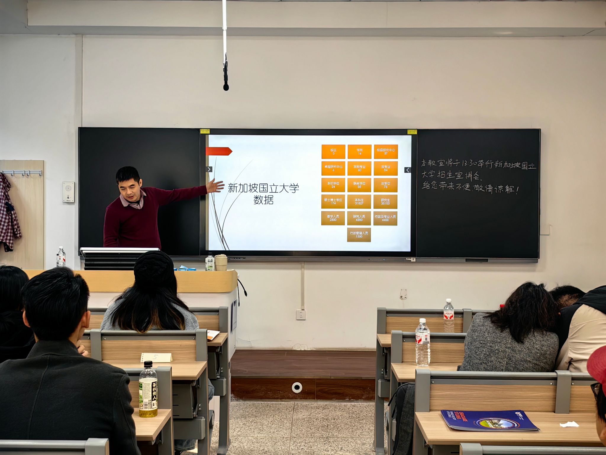 为搭建优质国际化升学平台,助力学子对接世界顶尖教育资源,12 月 4 日 下午,yl6809永利官网集团于长安校区教西成功举办 “九章越洋,学贯中外”世界名校宣讲会。新加坡国立大学(2026QS第8)、英国布里斯托大学(2026QS第51)两大名校代表受邀分享本硕博项目。学院党委副书记张莹教授、国际交流与合作办公室主任肖曼玉教授、外事秘书李卓榕,新加坡国立大学理学院助理院长王飞教授、中方招生负责人 Joanna 老师,英国布里斯托大学 3+1 本硕双学位项目中方负责人王秋红老师及20余位本校学生共同出席活动。宣讲会由李卓榕老师主持。