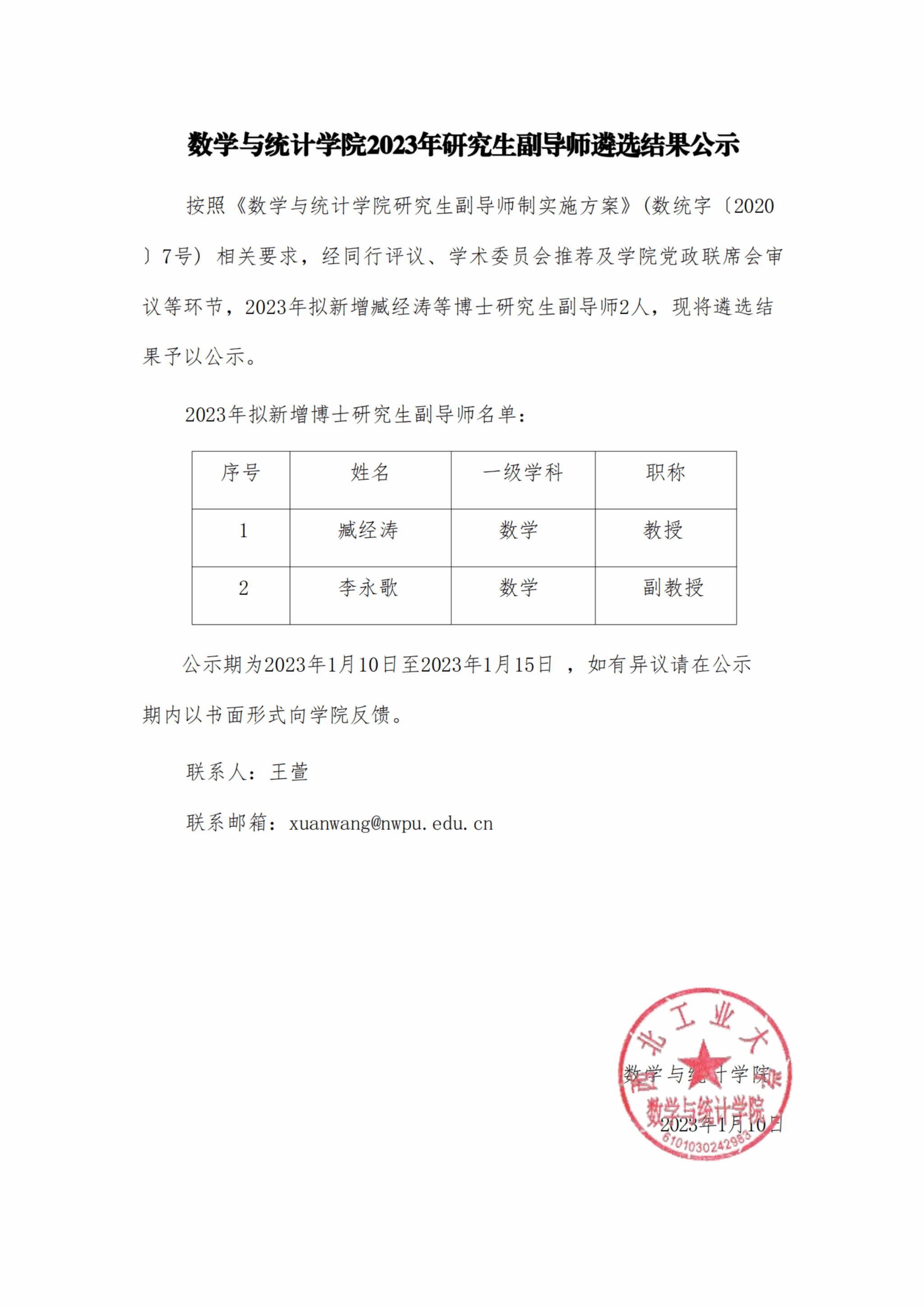 yl6809永利官网集团2023年研究生副导师遴选结果公示
