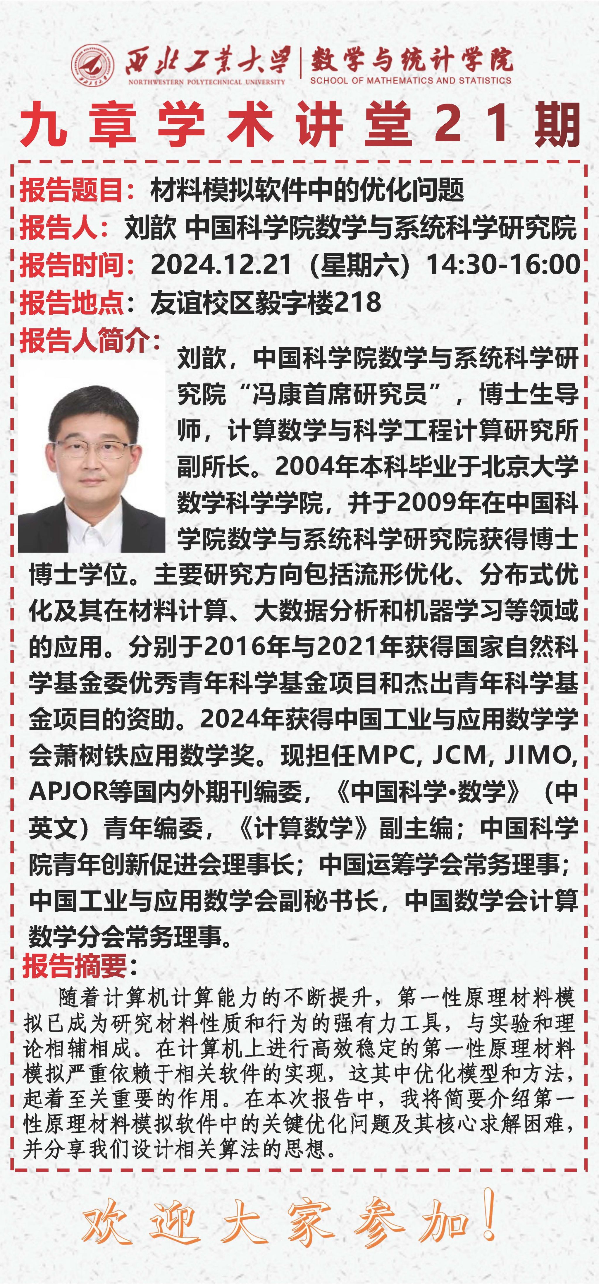 【九章学术讲堂第21期】材料模拟软件中的优化问题