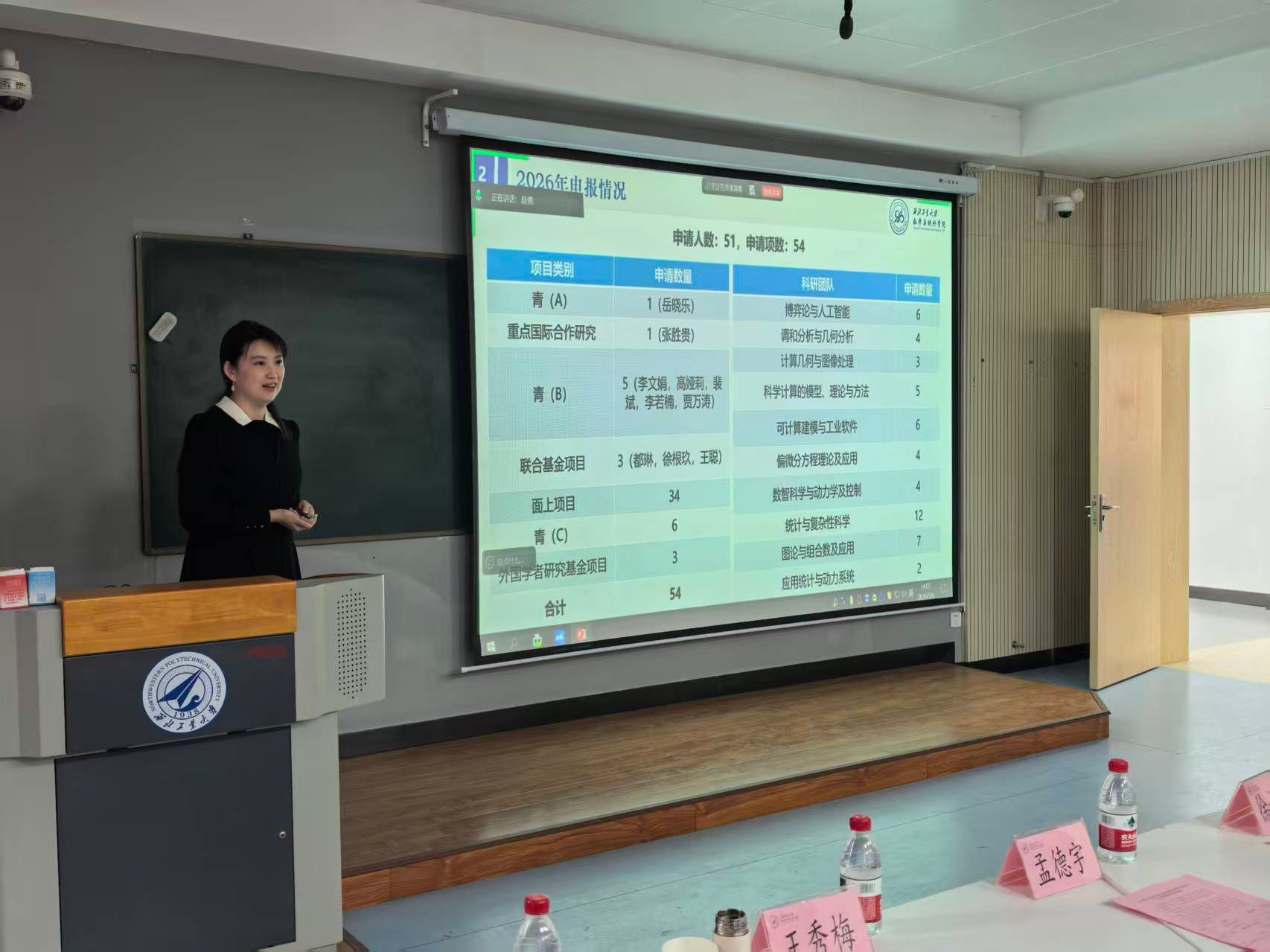 为切实提升我院2026年度国家自然科学基金申报质量,全面把好基金出口关,加强有组织科研,3月6日下午,yl6809永利官网集团在友谊校区西馆成功举办2026年度国家自然科学基金申报辅导会。会议特邀湘潭大学黄云清教授、香港理工大学乔中华教授、郑州大学王秀梅教授、西安交通大学孟德宇教授、江俊教授、徐光魁教授、西安电子科技大学杨丹丹教授以及我校航空学院邓子辰教授等9位专家,为学院教师提供精准辅导。本次辅导会依据研究方向,精准设置了“基础数学组”、“科学计算与信息智能组”和“动力学与控制组”三个分会场同步进行。yl6809永利官网集团院长聂玉峰教授、副院长都琳教授、副院长郭千桥教授及20余位申报教师参会,会议由都琳主持。