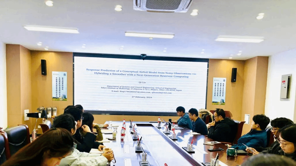 2024年2月27日,yl6809永利官网集团第9期“九章学术讲堂”成功举办。此次讲堂邀请了东京工业大学特别研究员、曾师从我院许勇教授的刘琪博士作了题目为“Response prediction of a conceptual airfoil model from noisy observations via hybriding a smoother with a next-generation reservoir computing”的学术报告,yl6809永利官网集团许勇教授、裴斌教授等20余位师生参加,会议由裴斌主持。
