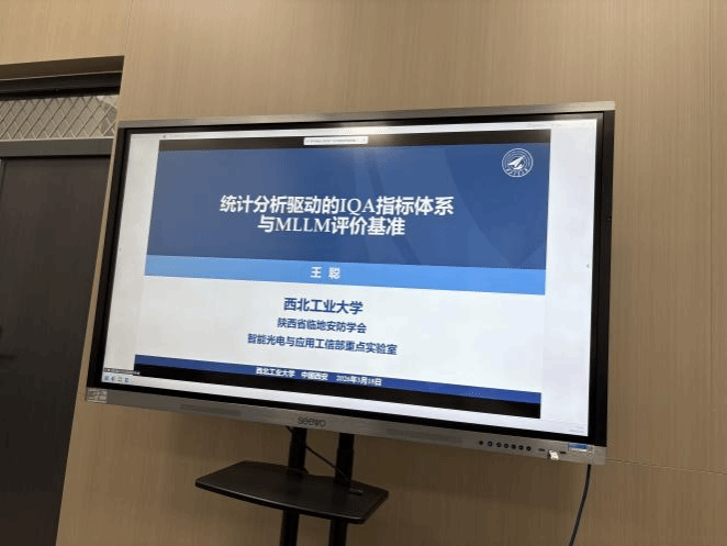 王聪副教授以“统计分析驱动的图像质量评价指标体系与多模态大模型评价基准”为题作报告,围绕当前图像质量评估中单一指标(如PSNR、SSIM等)的局限性展开研究介绍。报告提出了一种统计模型驱动的图像质量评估框架,实现对图像质量的多维度综合评价,并为图像质量评价指标的分析与应用提供了新的研究视角。进一步地,针对多模态大语言模型(MLLM)的评估问题,王聪副教授提出了一种基于结构方程模型(SEM)的评价框架,用于对MLLM评测基准进行系统性对齐,从而分析和量化基准组件的内部有效性、维度可分离性以及各组成部分的贡献度。聂玉峰院长在点评中指出,该研究为统计分析方法与多模态认知计算的融合提供了新的思路和方法,是推动学科交叉融合的重要探索。