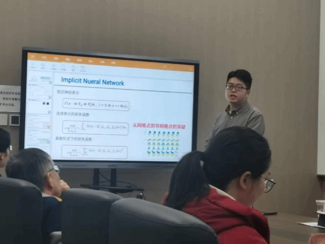 彭江军副教授以“基于张量分解的多先验融合反问题求解范式”为题作报告,围绕反问题求解中的数据建模与先验挖掘问题展开介绍。报告系统介绍了基于张量表示的数据结构建模方法,以及融合全变分正则与神经表示的多先验信息挖掘思路,并展示了相关方法在高光谱图像去噪、压缩感知、异常检测、视频复原及推荐系统等任务中的应用效果。报告结束后,聂玉峰院长、都琳副院长、潘璐璐教授和王俊刚教授围绕模型正则化设计、底层图像质量评价方法以及多先验融合策略等问题展开了深入讨论,对相关研究方向的发展提出了富有建设性的意见与建议。