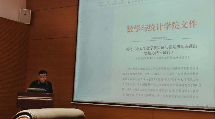 郭千桥副院长就拔尖班整体建设方案进行了介绍,包括培养计划安排、本科生导师制度、动态进出标准等内容。