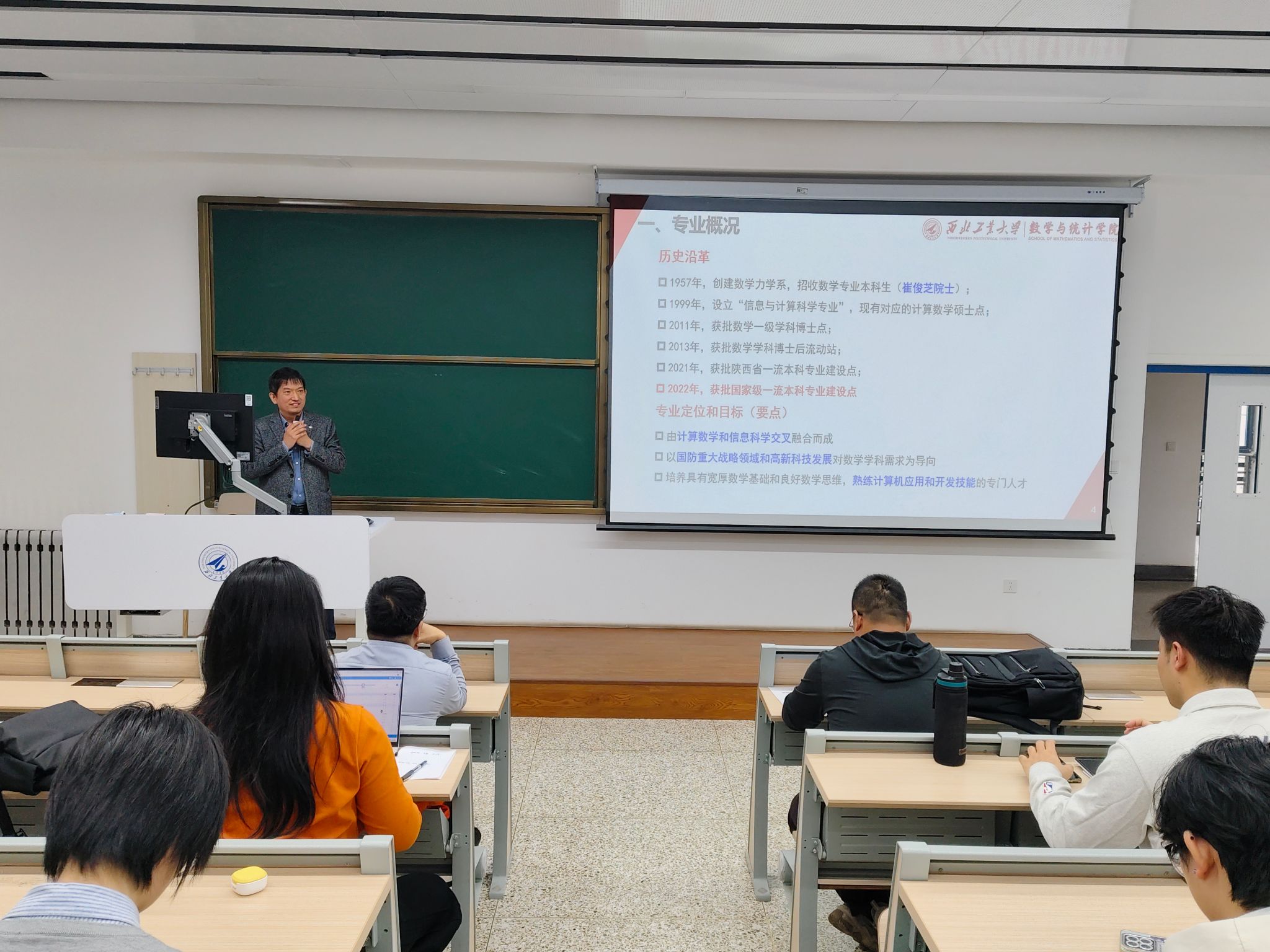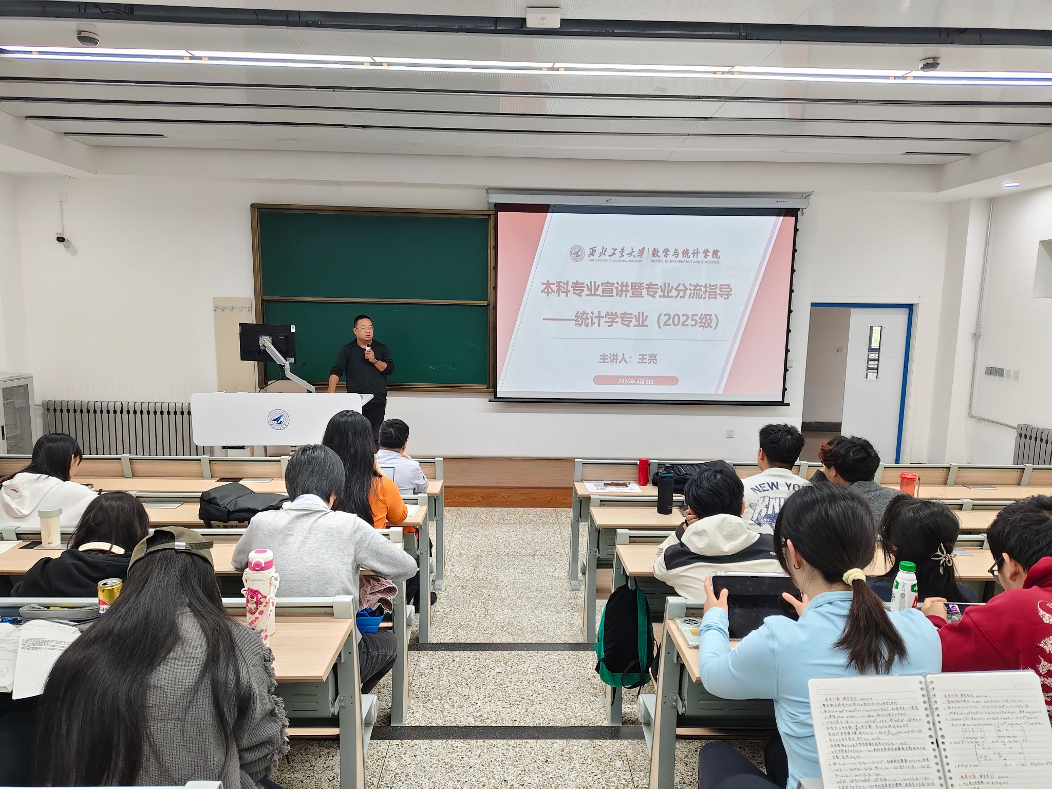 为深入推进“总师育人文化”走深走实,帮助2025级本科生全面了解专业方向、科学规划学业发展,2026年4月2日,yl6809永利官网集团在教西B2-204召开专业宣讲会。副院长郭千桥、数学科学系主任陆由、计算科学系主任赵俊锋、应用概率统计系主任王亮、2025级辅导员张倩、教学秘书李彦吉及全体2025级本科生参会。会议由郭千桥主持。