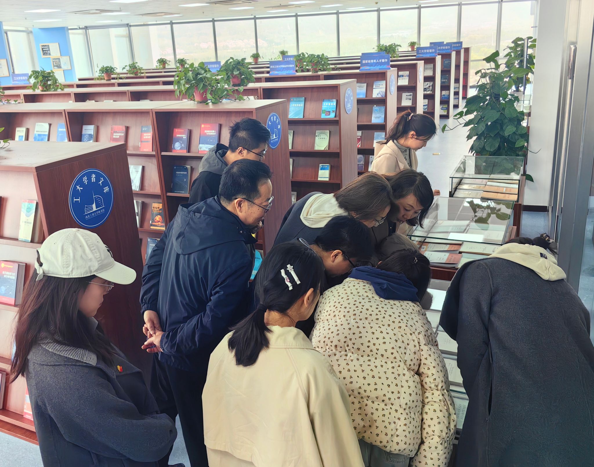 在工大学者文库参观期间,讲解员详细介绍了文库的建设历程、收藏范围以及文库中珍贵资料的背后故事。党员们认真观看了学校在教学、科研等领域的知名专家学者的风采以及他们在长期学术生涯中积累的科研成就、文献著作、原版科研手稿等。老一辈学者执着科研、严谨治学、求真务实的精神无不令人动容。这些学术成果不仅是学校的宝贵财富,更是激励同志们在各自岗位上不断进取、勇于创新的动力源泉。