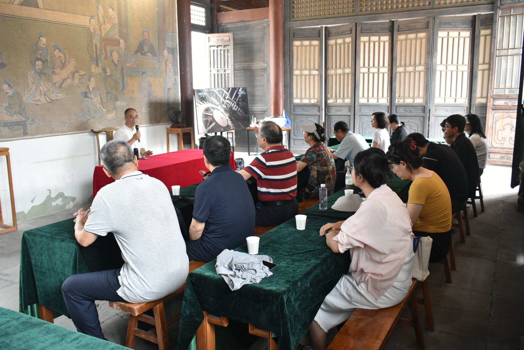 在芸阁书院中,牛锐院长又以“学为好人”精神为脉络,剖析关学思想中“德性培养”“礼义教化”“家国担当”三个维度,做了题为“砥柱人间是此峰—从关中大儒牛蓝川先生的‘学为好人’到‘廉洁文化’”的讲座报告。他结合牛蓝川先生“守规矩、有教养”的家风家训,进一步强调了廉洁文化的根基在于“修身齐家”的传统智慧。报告内容深刻,实例详实,引得大家阵阵掌声。