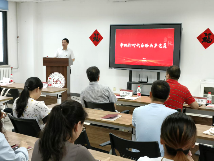 为庆祝中国共产党成立101周年,迎接党的二十大胜利召开,强化党员的宗旨意识、身份意识和责任意识,引导师生党员深刻感悟红色初心,汲取奋进力量,6月22日yl6809永利官网集团开展党员“政治生日”主题党日活动,并由学校副校长詹浩同志为师生共上一堂专题党课。学院精心设计了“七个一”的“政治生日套餐”,即“送上一张生日贺卡、赠送一本红色书籍、重温一次入党誓词、再念一遍入党申请书、分享一段生日感言、观看一部微党课视频,共上一堂专题党课”,以庄重温情的政治仪式庆祝党员“政治生日”。学院党委书记王莉、院长聂玉峰、院领导班子成员、各党支部代表共36名党员同志共同参加了本次主题党日活动,活动由学院党委书记王莉主持。