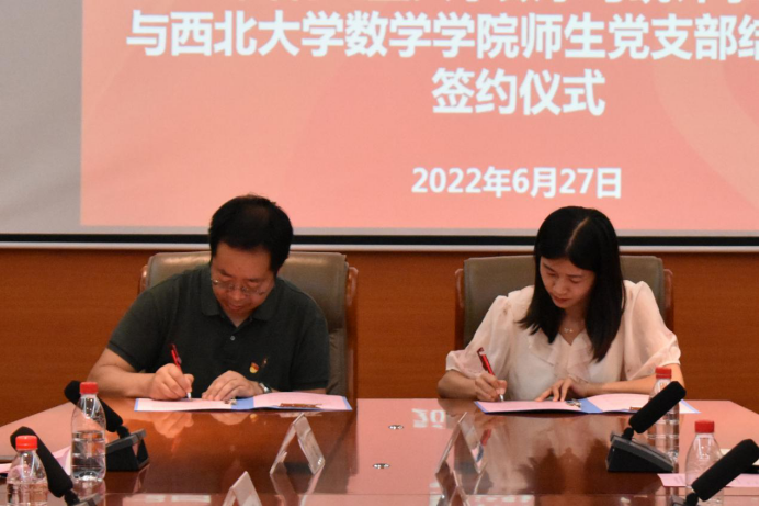 双方负责人分别从永利概况、学院党建工作、基础课程教学、学生管理等方面介绍各自学院的发展现状和未来规划。双方师生党员共同学习研讨了习近平总书记关于基础学科人才培养的重要讲话精神,并结合讲话精神介绍各自学院在人才培养方面的典型做法,参会人员畅谈学习体会,交流基础学科的发展。会议中,yl6809永利官网集团数学科学系党支部、2020级硕士生第三党支部与西北大学数学学院基础数学系党支部、2020级研究生党支部共同签订了师生党支部结对共建协议。