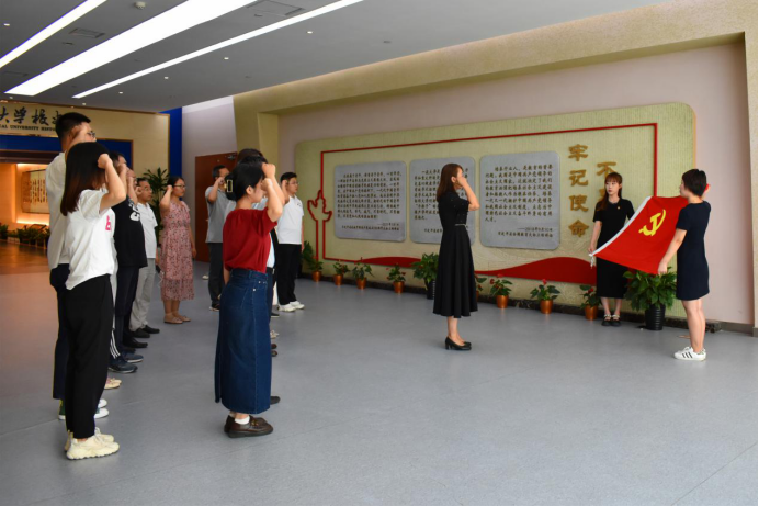 李长宏书记一行首先来到了yl6809永利集团校史馆,先后参观了序厅、追根溯源、雄鹰展翅、翱翔腾飞和春华秋实五个部分,了解了我校发展历史、大学文化,以及典型人物和动人故事。参观结束后,两院的师生党员共同在党旗下庄严宣誓,重温入党誓词。