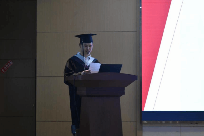 专业课教师代表彭国华通过“祝贺”“初心”“快乐”三个主题词表达了对在场同学们的美好祝愿和期望,祝贺大家顺利度过了四年的大学生活,希望他们不忘大学阶段培养起来的初心和习惯,保持健康快乐的心态,满怀家国情怀,继续努力奋斗。班主任张硕代表全体班主任上台发言,他回顾了自己担任班主任的工作经历,难掩喜悦之情,祝福同学们茁壮成长,牢记校风校纪,不惧艰险,在人生的道路上继续勇往直前