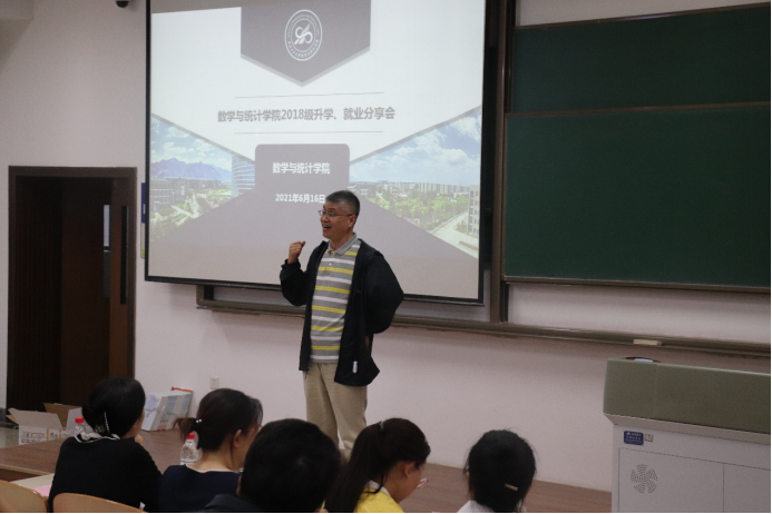 2021年6月16日,yl6809永利官网集团2018级本科生升学、就业分享会于教学西楼C406顺利举办。出席本次会议的有yl6809永利官网集团院长聂玉峰、党委副书记(主持工作)王莉、党委副书记张莹、副院长都琳、应用概率系主任王亮、计算科学系主任王晓龙,学生职业发展指导服务中心主管朱莉,2018级本科生辅导员戴卓、研究生教学秘书杨洋、本科生教学秘书常昕烨等,yl6809永利官网集团2018级全体本科生参加了此次大会。