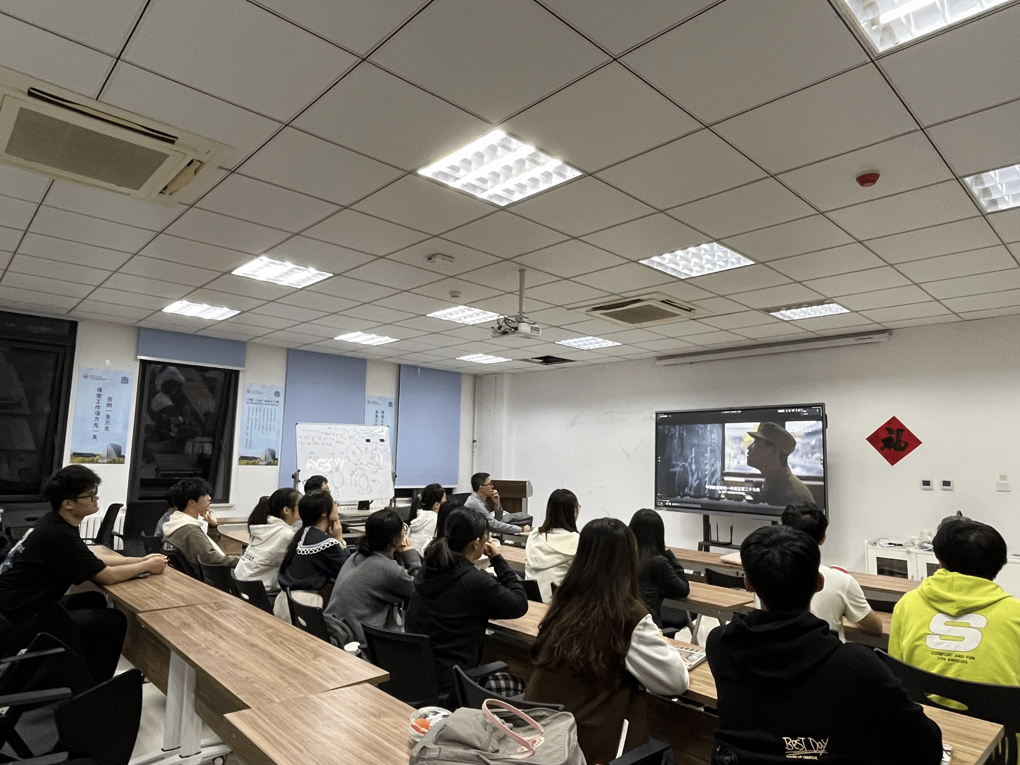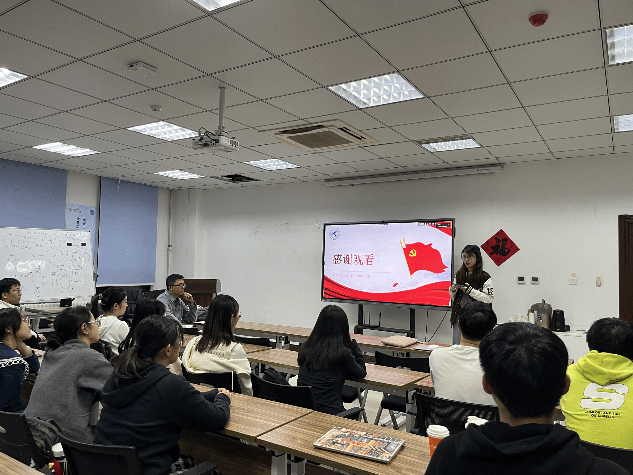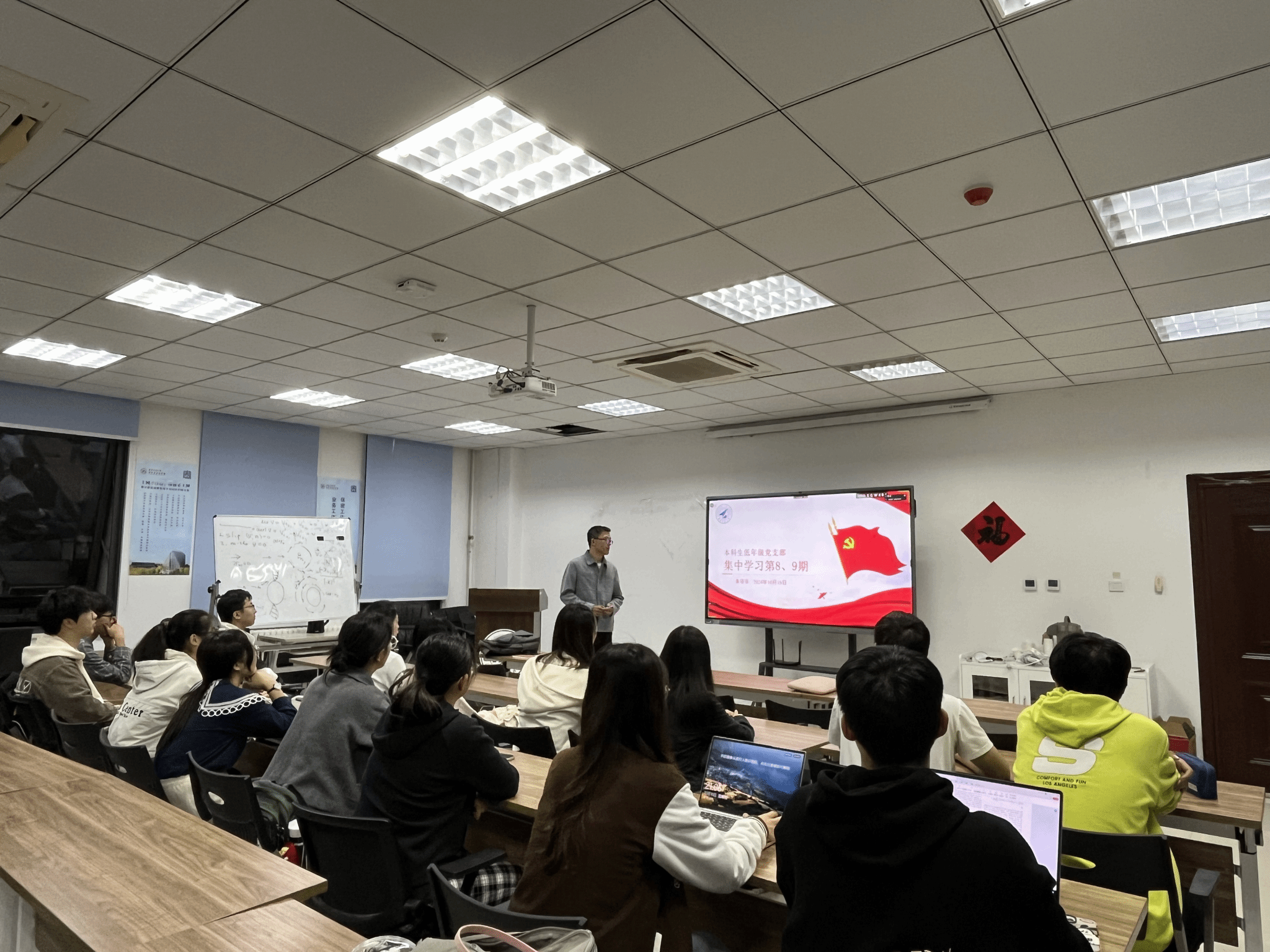 10月18日晚,yl6809永利官网集团本科生低年级党支部在启翔楼357组织“感恩祖国,成长成才”庆祝新中国成立75周年主题党日活动,通过党课+观影+经验分享,引领支部成员深刻领悟习近平总书记的重要论述,深入地了解祖国的发展历程和辉煌成就,将思想教育与实践体验有机结合,把爱国情怀转换为求知问学的动力。