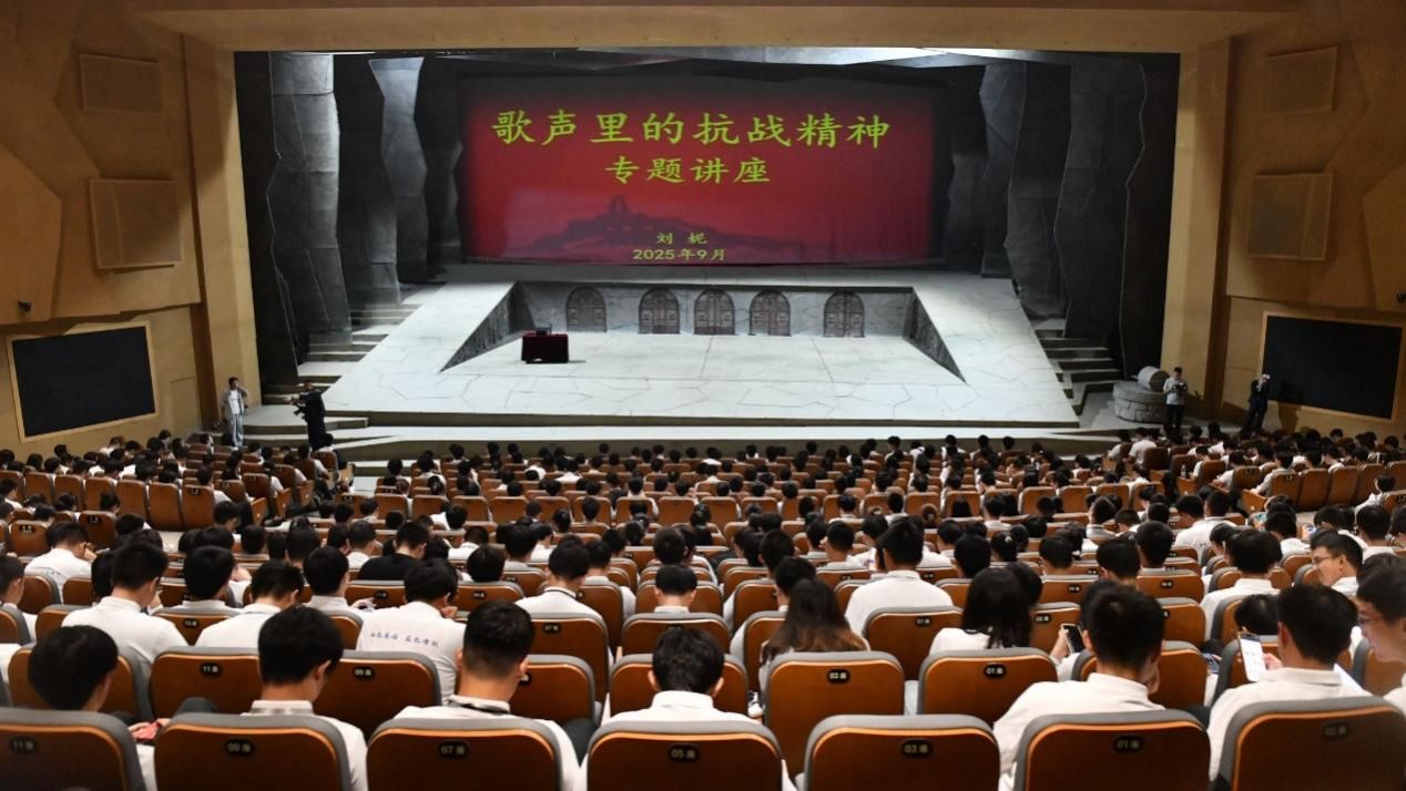 当日晚,师生们观看了大型红色历史歌舞剧《延安保育院》——保育员以血肉之躯筑起生命屏障,血泪交融的剧情震撼心灵。《歌声中的抗战精神》讲座则掀开文艺抗战的磅礴篇章:《延安颂》的旋律如曙光破晓,《黄河大合唱》的怒吼似惊涛裂空。乐符与历史在此碰撞,让学子们领悟到文艺既是匕首投枪,亦是凝聚民族魂的永恒火炬。
