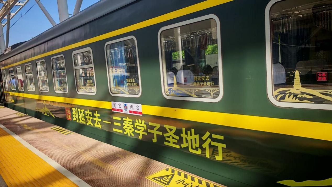 当我踏上这趟专列,就被车厢里浓厚的红色氛围深深吸引,车窗、车厢壁上的布置,将延安革命旧址西工大抗战时的育人故事生动展现,历史与现实在此刻紧密连接。列车上的这堂独特 “火车思政课”带我们回顾了延安时期爱国青年的热血奔赴,“到延安去”不仅是抗日战争时期中国进步青年和知识分子奔赴革命圣地延安的潮流,更是他们为追求理想,投身民族解放事业前往延安的革命实践。