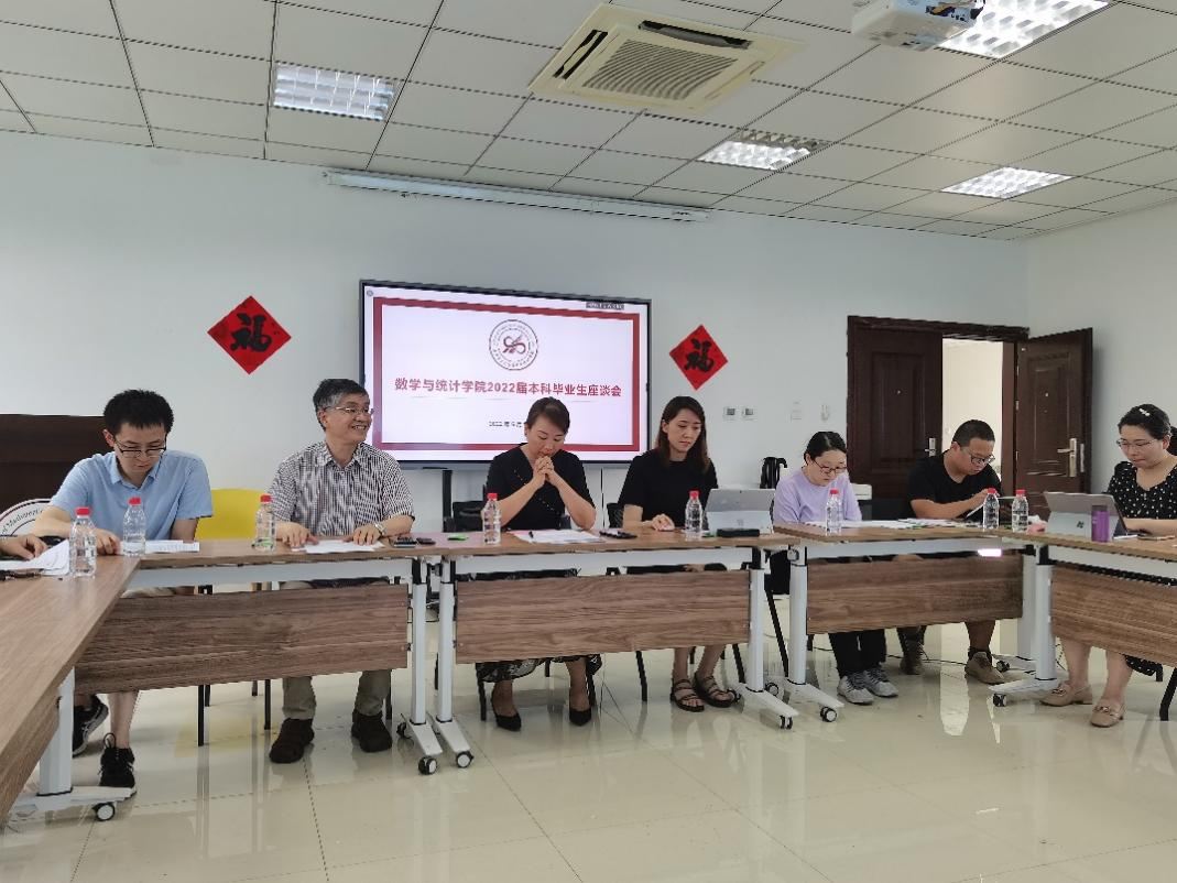 6月20日下午,yl6809永利官网集团2022届本科毕业生座谈会于启翔楼357举行。院长聂玉峰、党委书记王莉、党委副书记张莹、院长助理刘晓刚、应用概率统计系主任王亮以及班主任代表白立乾、马啸、刘昕出席了此次会议,25名2022届本科毕业生代表参加了此次座谈会,会议由党委副书记张莹主持。