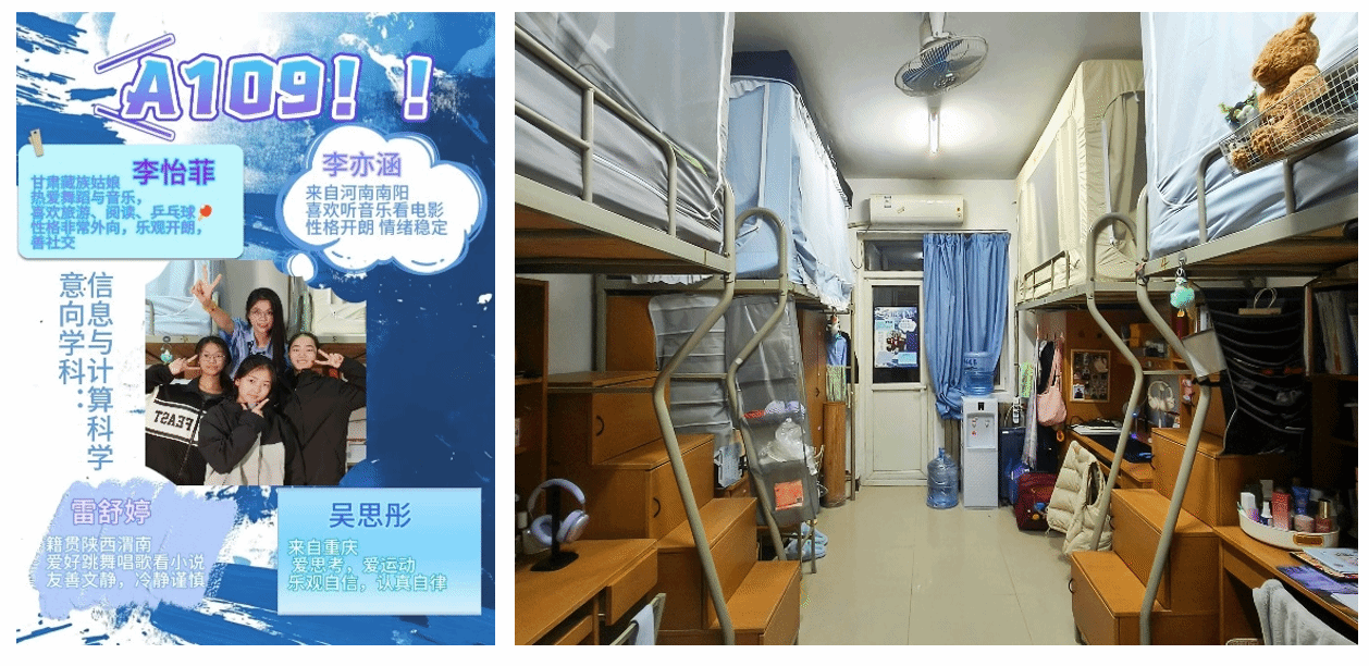 宿舍简介:我们以“逻辑化平衡”为核心理念,借日程表统筹学业生活,与舍友同频奋进;以平等沟通消弭分歧,共守舍规以保作息与安全。学业上主动问辨,相处间严谨探讨与日常谈笑兼具,尽显数学学子自律向上、温情共融的风貌。