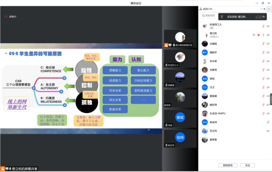在经验分享环节,计算机学院王云岚副教授从为师之道、学业规划、日常管理、风险管控等8个方面介绍班级管理心得,强调了因材施教、分类指导等细节管理的重要性。王云岚老师在分享中还提出,“管理好学生的最好时机是大一开学,其次是现在”,班主任老师应充分发挥自身专业优势,全面提升班级学生的专业素养及创新能力。紧接着,yl6809永利官网集团裴斌教授作《全过程精准画像、全方位整合资源、全覆盖帮扶提升》专题分享。裴斌老师强调了坚持为党育人、为国育才的初心使命,介绍了“以学生为中心、润物细无声”的班级育人理念,提出了贯穿班级管理始终的“三航筑梦、促学笃行、强基固本、创新赋能、塑造价值”思想,并就“导学+必学+互学+督学”的班级管理模式进行了着重分享。随后,计算机学院林奕副教授以《我有一个梦想》为主题,从培养什么样的学生、学生类别、学生成长的动机与特殊学生指导、班级管理存在的问题与建议等4个方面展开分享,重点指出人才培养的任务不仅仅是传承而是超越。此外,林奕老师提出了建立班主任工作资源库、班委工作指南、建立心理专家支持渠道等班级管理方面的可行性建议。通过三位老师对班主任工作的理解、感悟和思考,与会人员均表示参加本次交流会收获颇丰,为今后做好班主任工作指明了方向。