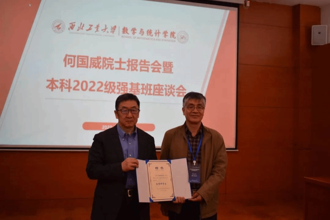 会议伊始,聂玉峰院长首先就何国威院士的到来表示热烈欢迎,同时指出国家、学校高度重视强基计划的人才培养,鼓励同学们珍惜每一次聆听报告的机会,开拓视野,逐渐养成研究式学习的习惯。随后为何国威院士颁发了2022级强基班首席科学家聘书。