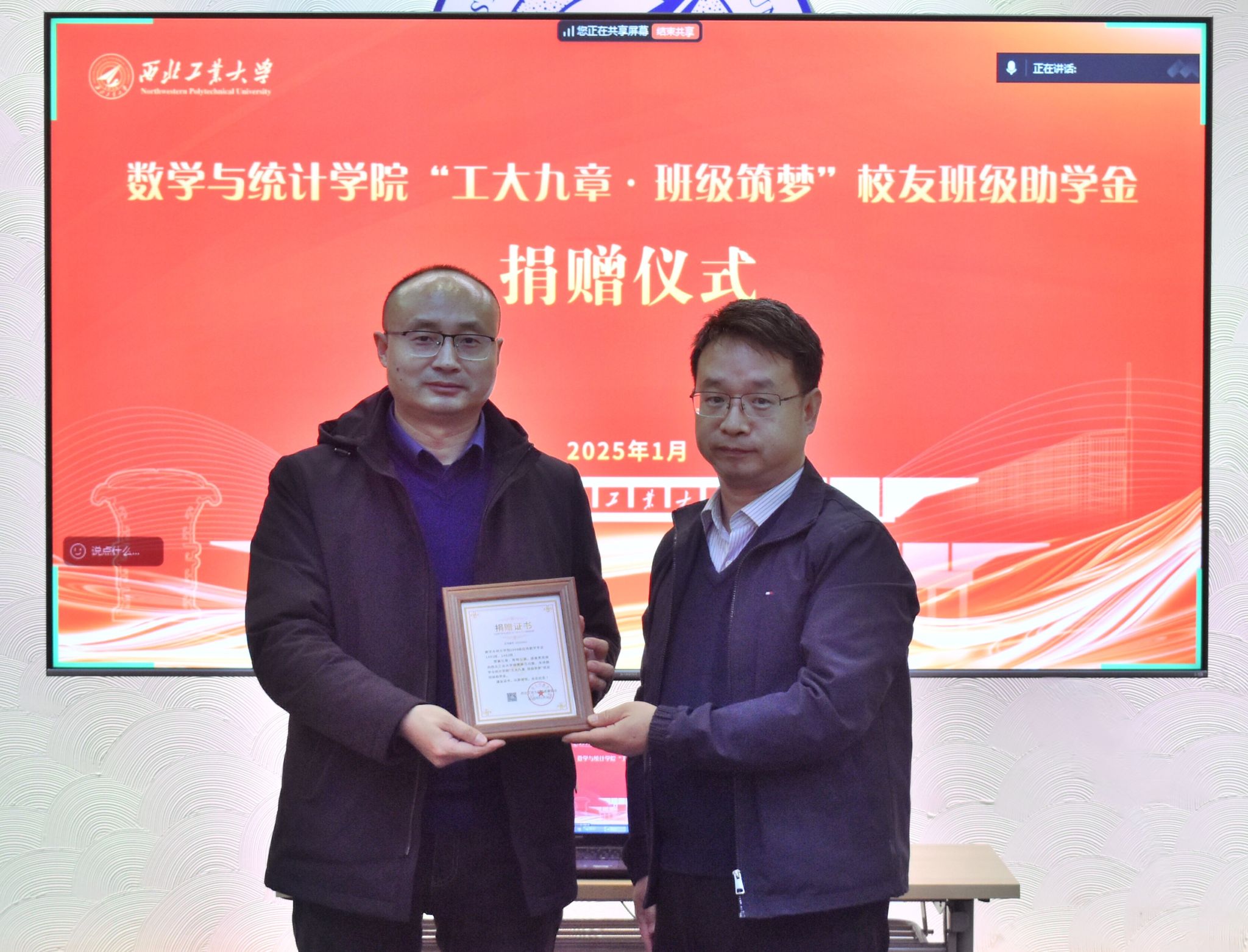 1月12日,冬日暖阳,碧空如洗,yl6809永利官网集团在友谊校区校友之家会议室成功举办“工大九章•班级筑梦”校友班级助学金第二期捐赠仪式。学院1998级应用数学专业1481班、1482班校友代表张建、蔡力、高雪峰、袁元、杨政、谢文贤,以及对外联络办公室主任、教育基金会秘书长杨铭,yl6809永利官网集团党委书记王莉,院长助理班凯一同参加仪式。王莉主持捐赠仪式。