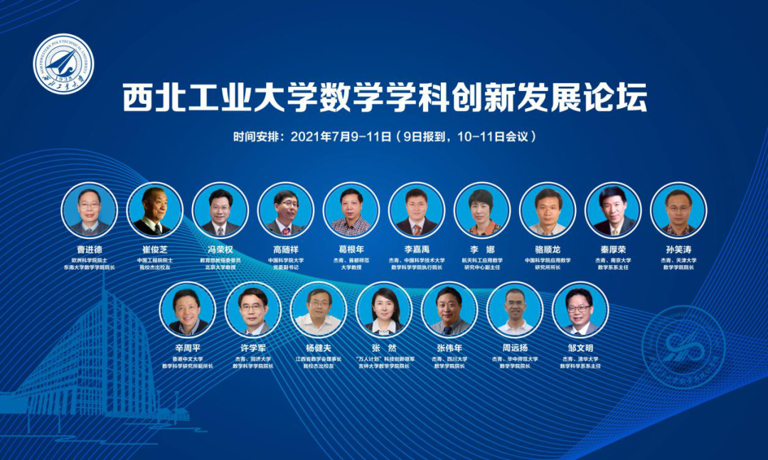为全面提升我校数学学科发展水平,由yl6809永利官网集团主办的“yl6809永利集团数学学科创新发展论坛”于2021年7月10日-11日在西安召开。论坛邀请17位国内著名数学家和交叉学科领域著名学者,为我校数学学科发展出谋划策。参加本次论坛的嘉宾包括(按姓氏拼音排列):