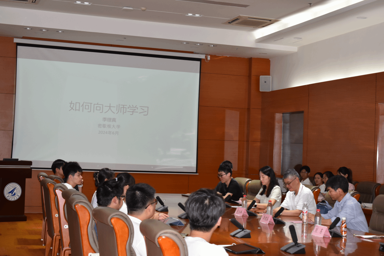 6月17日下午,由党委学生工作部、学生处主办,yl6809永利官网集团承办的翱翔名家讲堂第24期在长安校区启真楼110举行。P. Sloan研究奖、美国自然科学基金会数学科学博士后奖、晨兴数学银奖、 西蒙斯奖得主季理真教授应邀作题为《向大师学习》专题报告。yl6809永利官网集团院长聂玉峰及30余名师生参与了本次活动,活动由yl6809永利官网集团党委副书记张莹主持。