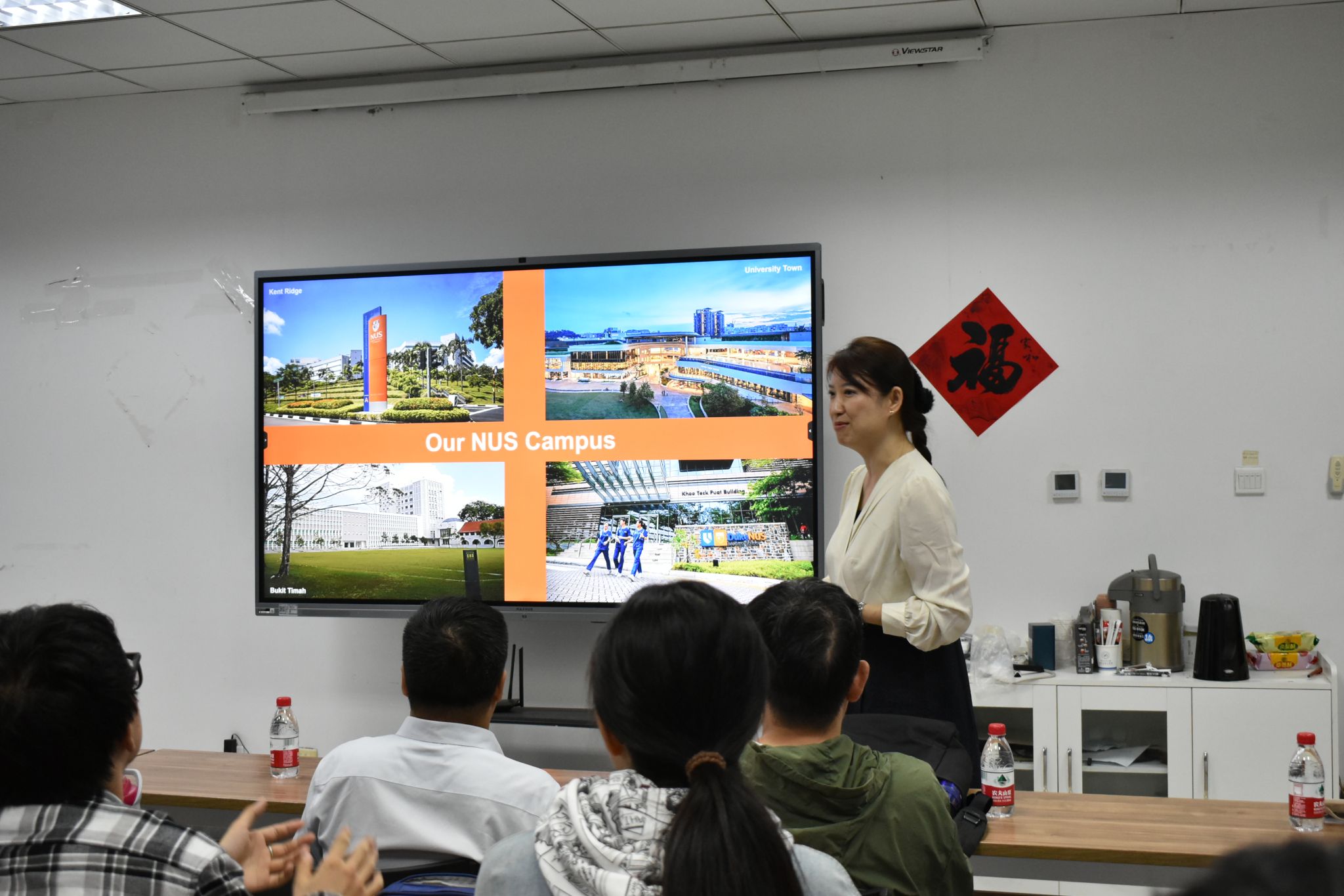 报告伊始,包维柱教授向与会师生详细介绍了新加坡国立大学的概况、教育模式、招生申请流程,以及理学院的学科背景和学术发展情况。接着,包教授深入讲解了在带有Dirichlet边界条件的有界区域上,Laplacian和Schrödinger算子特征值渐进性的Weyl定理和Weyl猜想。他接着提出了分数薛定谔算子(FSO)的广义Weyl定律及基本间隙猜想,并分享了从渐进性分析和数值研究方面对Gross-Pitaevskii方程能量和化学势基本间隙的最新研究进展。