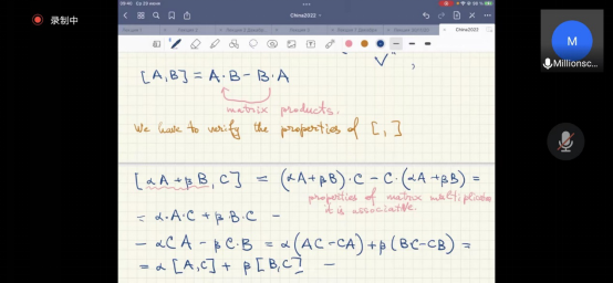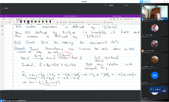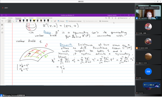 2022年6月27日至7月9日,yl6809永利官网集团举办的暑期国际讲堂《李代数与可积双曲方程》通过腾讯会议APP圆满完成授课。该课程由莫斯科国立大学教授Dmitry V Millionshchikov(Millionshchikov是代数拓扑学及其应用、微分几何和幂零李代数理论及其应用等领域的知名专家。他还是莫斯科国立大学罗蒙诺索夫分校高等几何学和拓扑学系的副主任)和Sergey V. Smirnov(Smirnov曾多次在北京大学,密歇根州立大学,莫斯科独立大学做讲座)讲授。来自数学、机电及伦敦玛丽女王等学院的本科生、博士生及旁听生参加了该课程。