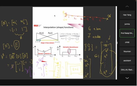 本课程的主题是非线性拓扑优化以及大规模计算中的缩减模型等理论知识。Balaji Raghavan教授介绍了非线性连续介质力学的基础知识,包括张量代数与微积分、拉格朗日法与欧拉法、变形(应变)运动学、压力测量、连续介质热力学与本构模型、非线性弹性、三维小应变与有限应变塑性。对于基本有限元法与离散化、基于Matlab(体素网格)的二维线弹性有限元分析。Balaji Raghavan教授通过手写绘图等多种生动形象的形式授课,使同学们透彻理解每个概念。