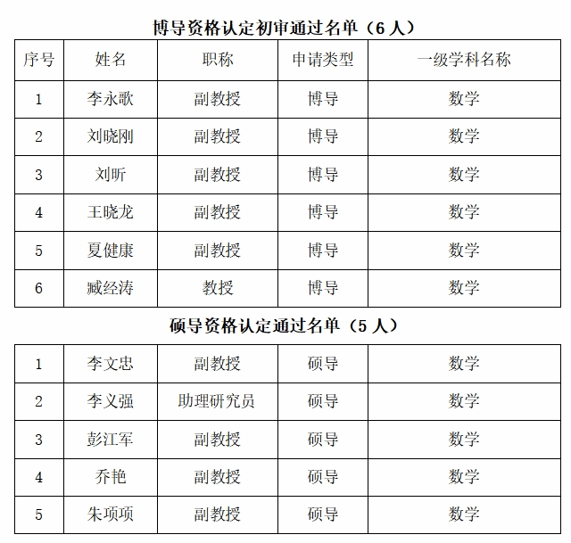 关于yl6809永利官网集团导师资格认定学院评审结果的公示