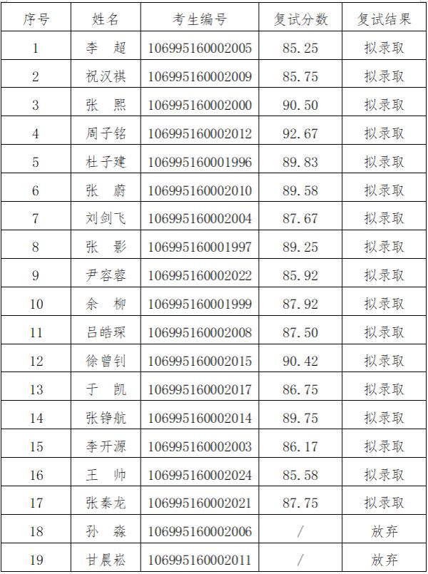 根据《yl6809永利官网集团2025年博士研究生复试工作方案》,经复试资格审核及现场复试等环节,现将我院2025年博士研究生考核结果公示如下: