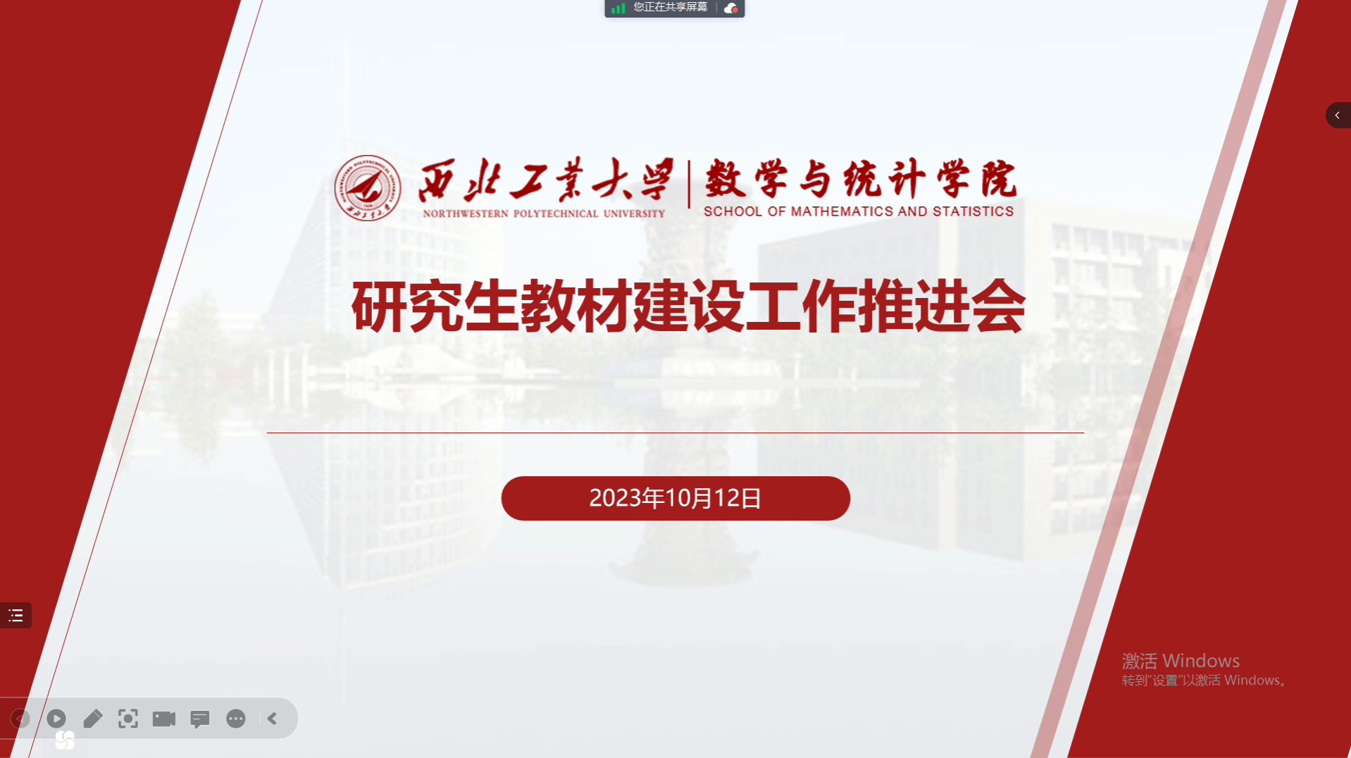 为推动陕西省理工类高校工科硕士研究生数学基础课程教材共建共享,加快yl6809永利官网集团校级立项教材、基础前沿课教材建设进程,提升教材建设质量,2023年10月12日下午,我院通过腾讯会议线上组织研究生教材建设工作推进会。院长聂玉峰、副院长徐根玖、研究生公共课课程负责人、“十四五”校级规划教材建设项目负责人、基础前沿课程负责人等20余名教师参加会议。推进会由徐根玖主持。