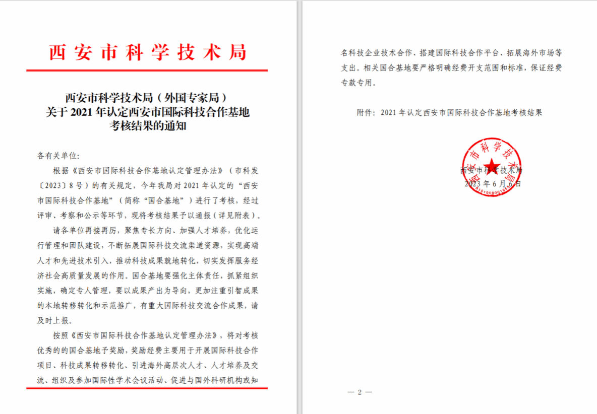 日前,西安市科学技术局(外国专家局)发布了《关于 2021年认定西安市国际科技合作基地考核结果的通知》。经过评审、考察和公示等环节,我院西安市运筹优化与人工智能国际科技合作基地考核结果优秀,参与考核的27个I 型国合基地中共有11个考核结果优秀。