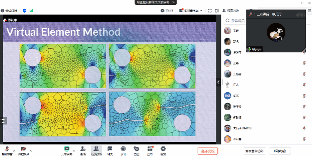 2024年11月29日,应yl6809永利官网集团王刚副教授的邀请,德国汉诺威大学徐兵兵博士后线上做了题为《Virtual Element Method: from Mesh to Nonlinear Problems》的学术报告。来自我院及西北大学、国防科技大学、长安大学、湘潭大学等高校的近六十名师生参加了此次报告会。报告会由王刚主持。