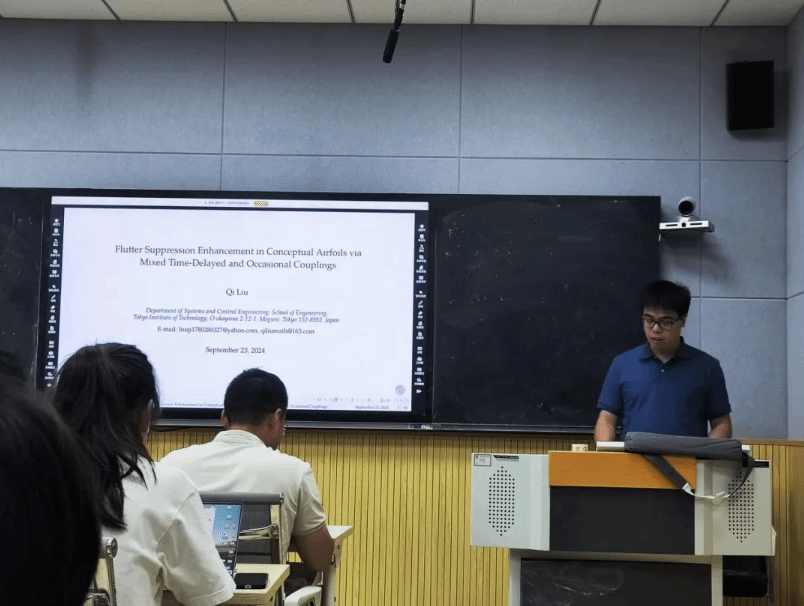 2024年9月23日,东京工业大学刘琪特任研究员受我院许勇教授邀请,于长安校区理学院315会议室作题为“Flutter Suppression Enhancement in Conceptual Airfoils via Mixed Time-Delayed and Occasional Couplings”的学术报告。20余位师生参与本次报告,报告由李永歌副教授主持。