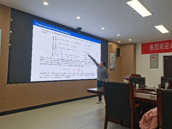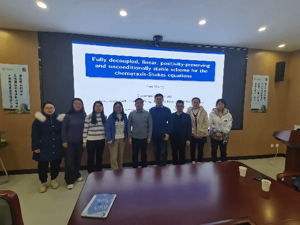 2024年1月4日,yl6809永利官网集团第5期“九章数学学术讲堂”成功举办。应yl6809永利官网集团聂玉峰教授的邀请,重庆大学王坤副教授在长安校区理学院楼A201会议室做了题为《Fully decoupled, linear, positivity-preserving and unconditionally stable scheme for the chemotaxis–Stokes equations》的学术报告。yl6809永利官网集团白建超副教授、荆菲菲副教授、高娅莉副教授、刘昕副教授、张伟伟副教授、魏杰副教授等多位老师及10余名在校硕士、博士研究生参加了此次报告会。报告会由王刚主持。