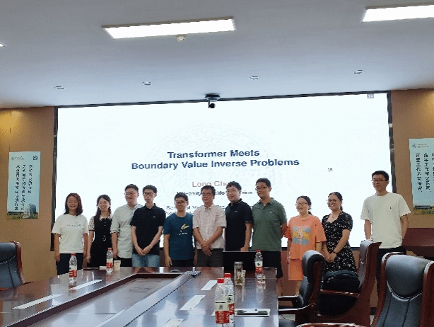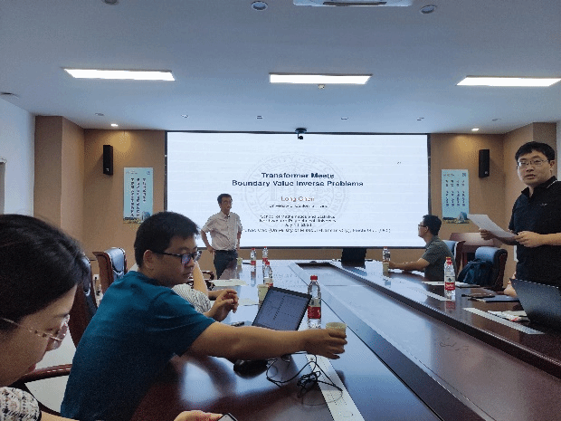 2023年7月14日上午10点,应yl6809永利官网集团王刚副教授的邀请,美国加州大学欧文分校陈龙教授在理学院A201会议室做了题为《Transformer Meets Boundary Value Inverse Problems》的学术报告。yl6809永利官网集团白建超副教授、赵丽静副教授、刘昕副教授、张伟伟副教授、朱项项副教授、西安交通大学王飞教授等多位老师及10余名硕士、博士研究生参加了此次报告会。报告会由王刚主持。