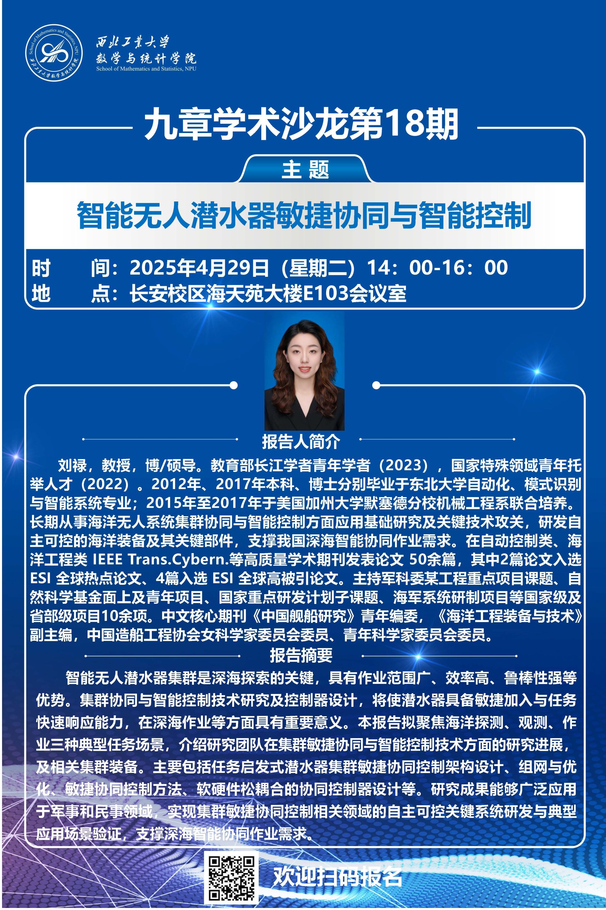 2025年4月29日,yl6809永利官网集团第18期“九章学术沙龙”成功举办。本次讲堂邀请yl6809永利集团航海学院刘禄教授作题为“智能海洋无人集群敏捷协同与智能控制”的报告,并与我院教师围绕科研合作进行座谈。我院20余位师生参会,本次报告会由副院长都琳教授主持。