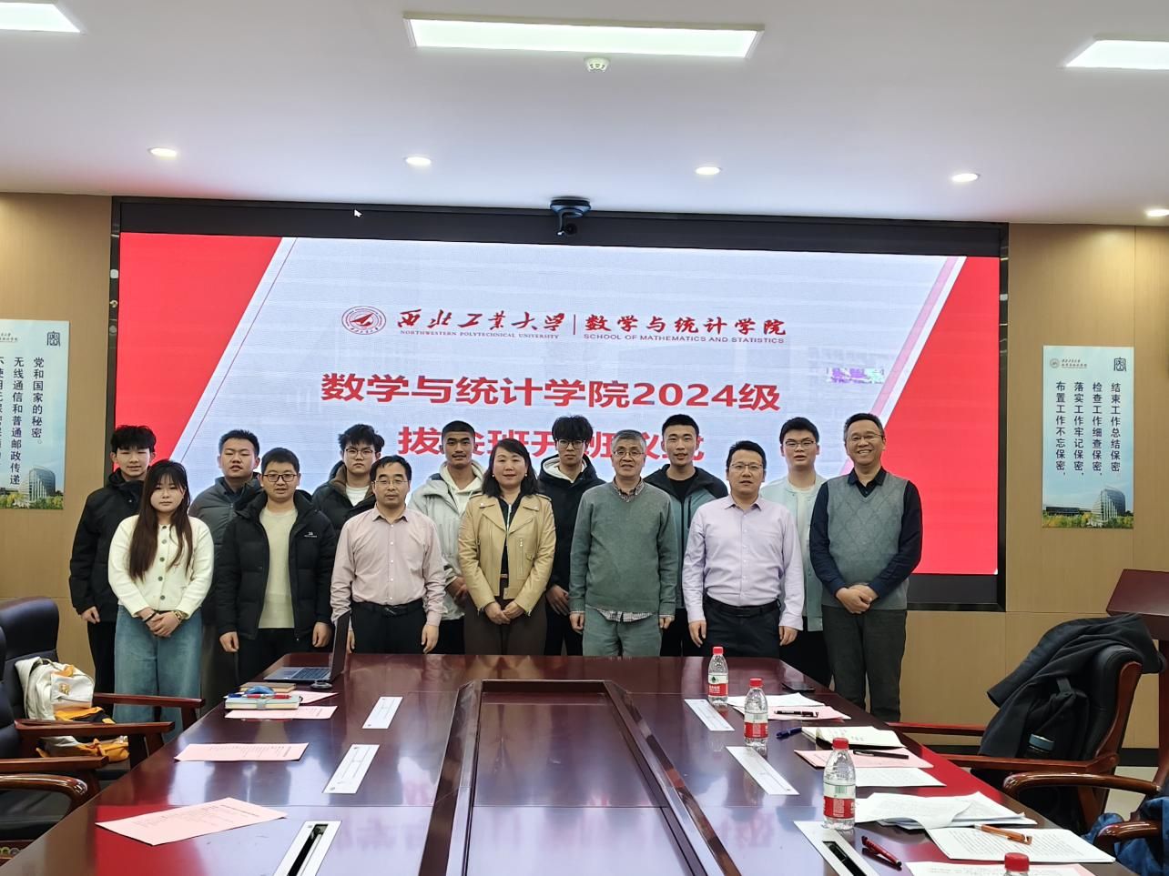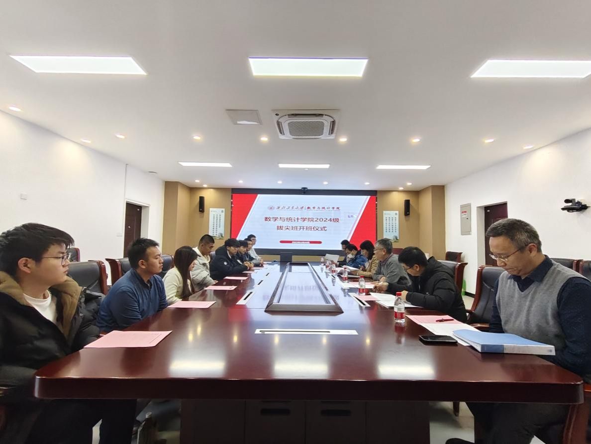 2025年2月26日,yl6809永利官网集团2024级拔尖班开班仪式在长安校区理学院201会议室顺利召开。学院院长聂玉峰、党委书记王莉、副院长郭千桥、院长助理刘晓刚、院长助理兼2024级辅导员班凯、班主任白建超、教学秘书李彦吉及拔尖班8位入选同学参加。仪式由副院长郭千桥主持。