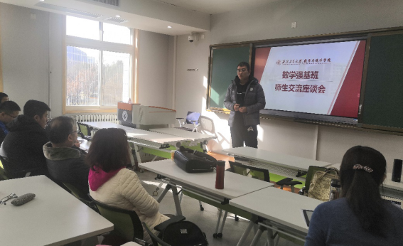 为全面掌握我校强基计划数学类培养方案的执行情况,总结教育教学过程中的实践经验,发现学生培养中存在的问题和不足,优化调整后续培养计划和教学活动,2020年12月23日上午yl6809永利官网集团在教东B211教室举办了2020-2021学年秋学期“数学强基班”师生交流座谈会。