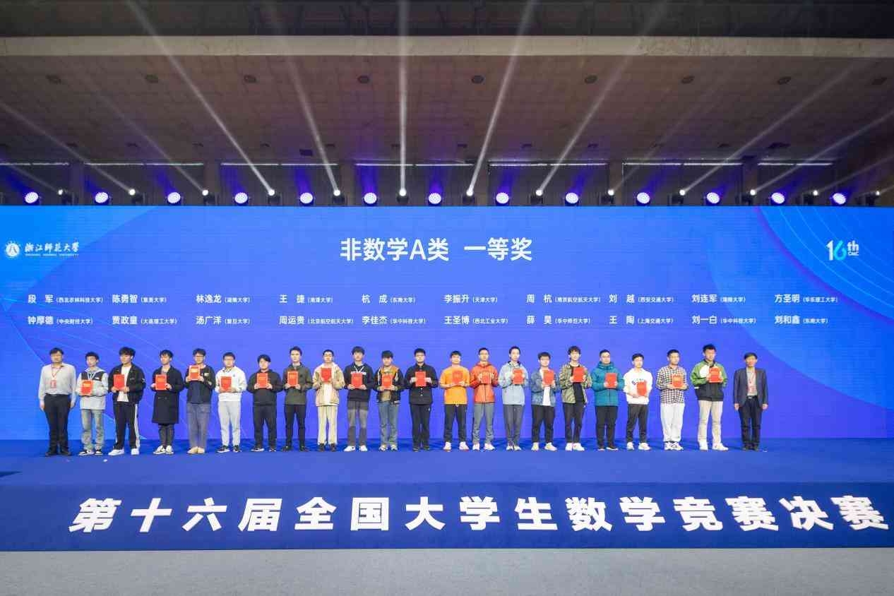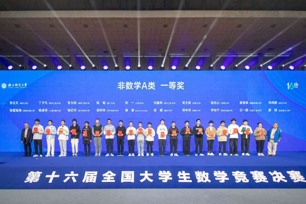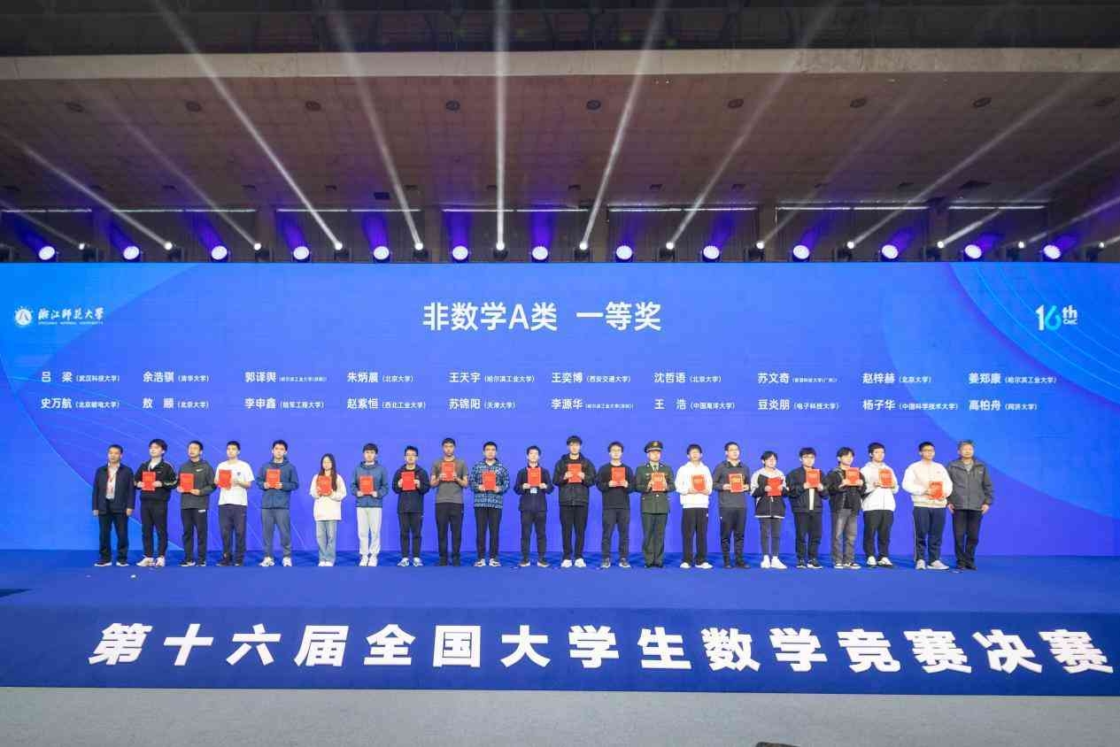 本次比赛由中国数学会主办,浙江师范大学承办,来自北京大学、清华大学、中国科学技术大学、复旦大学、浙江大学等全国1223所高校的32万多学生参赛。经过层层选拔,最终产生352所高校的1254名学生跻身决赛,我校来自yl6809永利官网集团、电子信息学院、教育实验学院、自动化学院、航天学院、机电学院的12名学生进入决赛,规模为历史之最。经过激烈角逐,我校共获得全国一等奖4项、全国二等奖5项、全国三等奖3项。获奖数量再创新高,非数学类首次获得4项一等奖,创历史之最。中国科学院院士、中国数学会理事长席南华教授,中国科学院院士、浙江省数学会理事长包刚教授等数学界顶级专家出席颁奖大会为同学们颁奖。