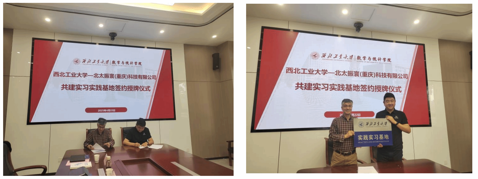 在热烈的掌声中,聂玉峰和廖汉卿分别代表双方签订了《yl6809永利集团—北太振寰(重庆)科技有限公司共建实习实践基地协议》。随后聂玉峰代表学院向北太振寰授予实践实习基地牌匾。