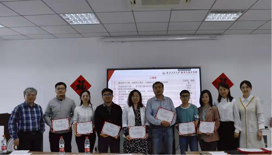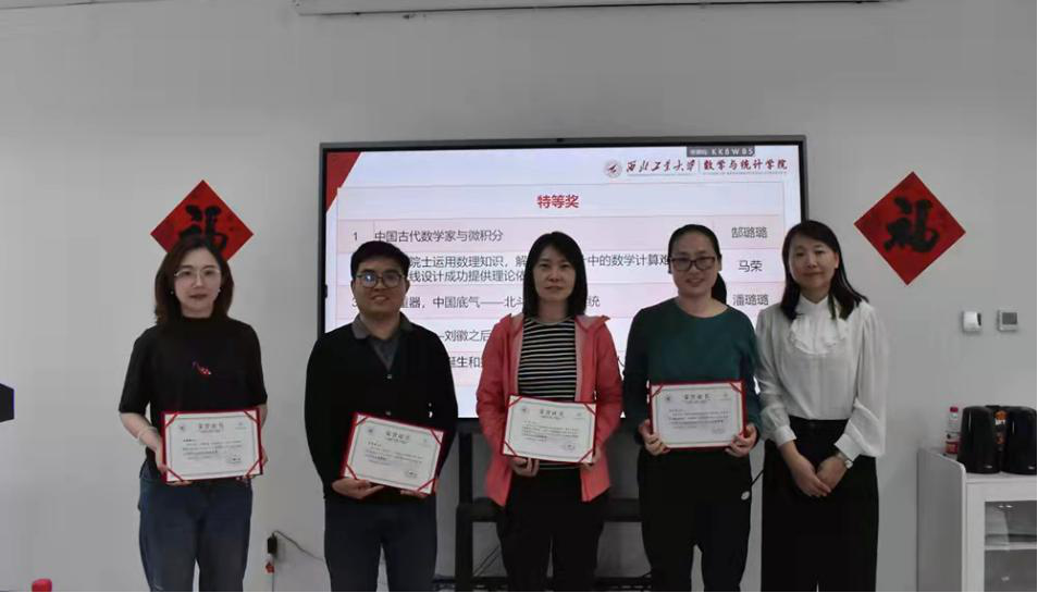 为贯彻落实《一流本科人才培养行动计划》,全面推进课程思政建设,提升全体教师的课程思政意识,充分发掘课程育人功能,yl6809永利官网集团举办首届数学类课程思政教学案例设计大赛。本次大赛由yl6809永利官网集团课程思政教学研究中心主办,共收集数学类课程思政教学案例160余例,经初评、外审和会评三个环节,共评出特等奖5项、一等奖10项和二等奖14项,并于4月8日在启翔楼357进行颁奖典礼。学院党委书记王莉、副院长都琳、教学委员会主任彭国华以及20余位获奖教师出席了此次颁奖典礼,典礼由学院课程思政中心副主任潘璐璐老师主持。
